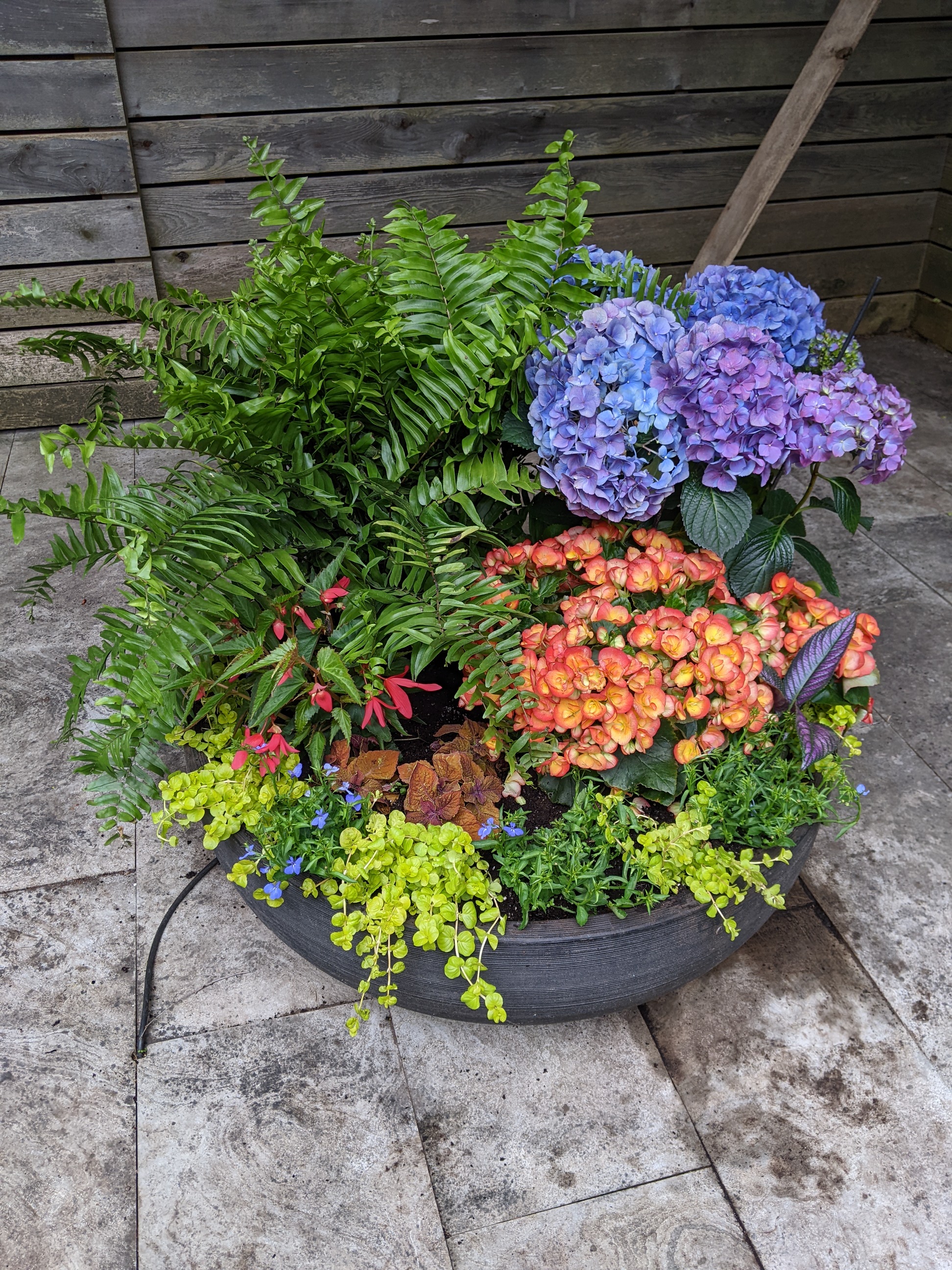 For instance, this planter is in deep shade, so we decided upon an extravaganza of foliage.