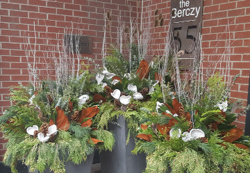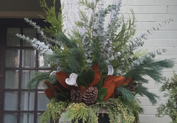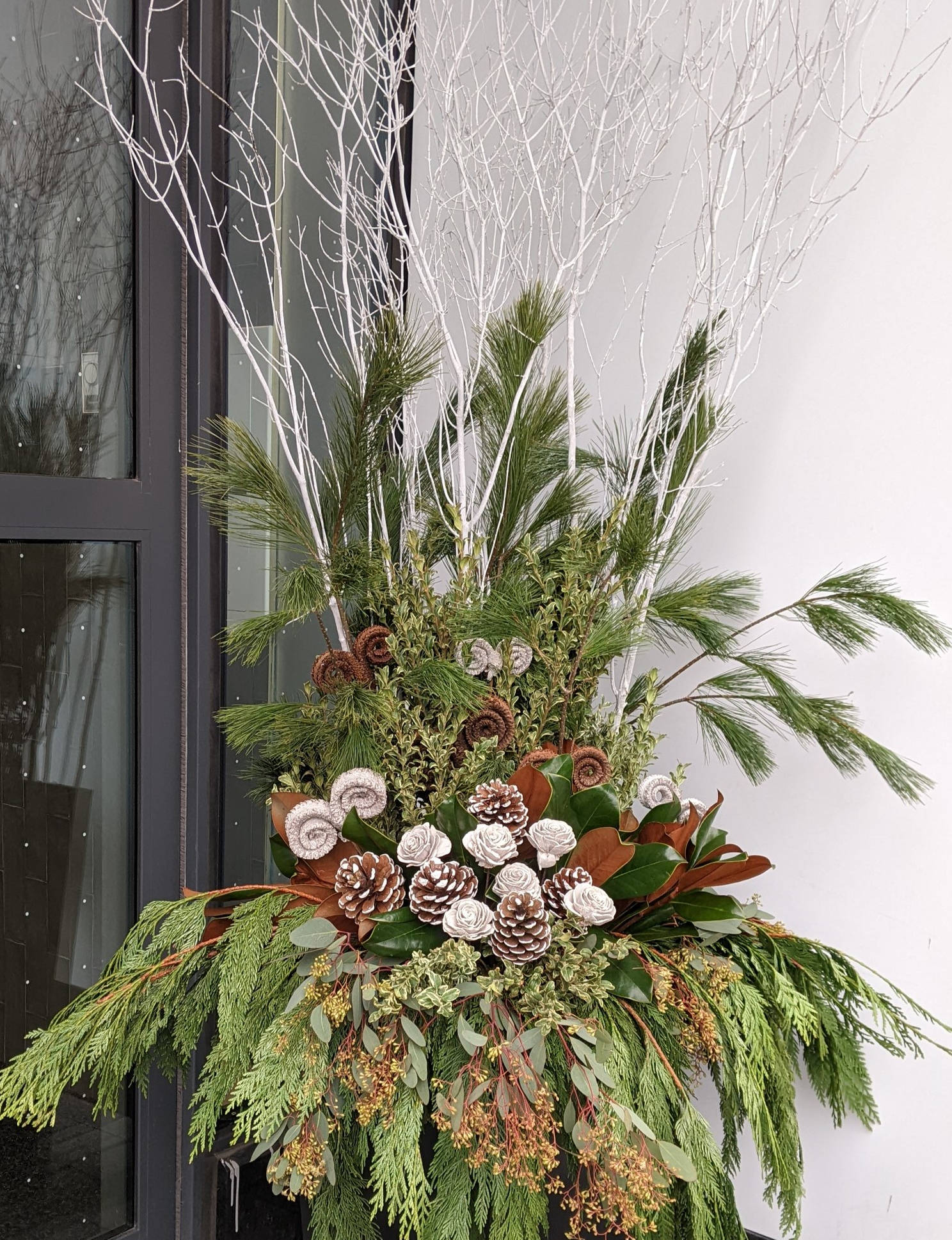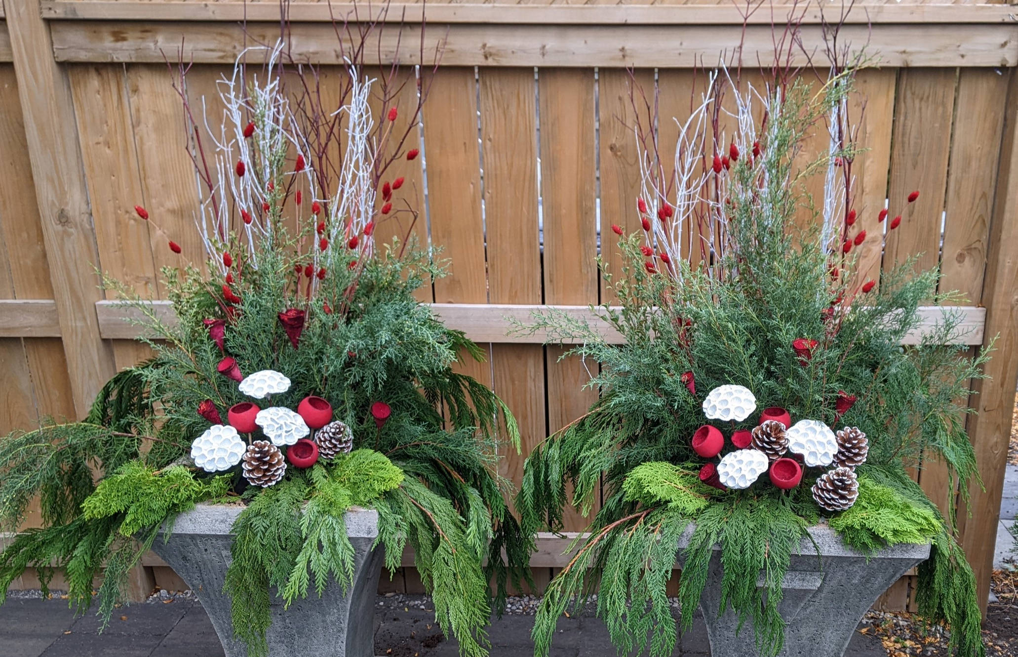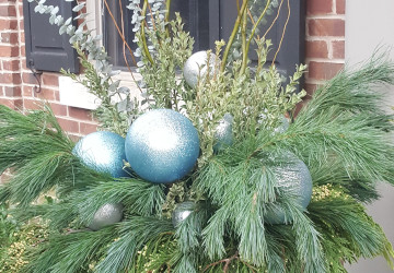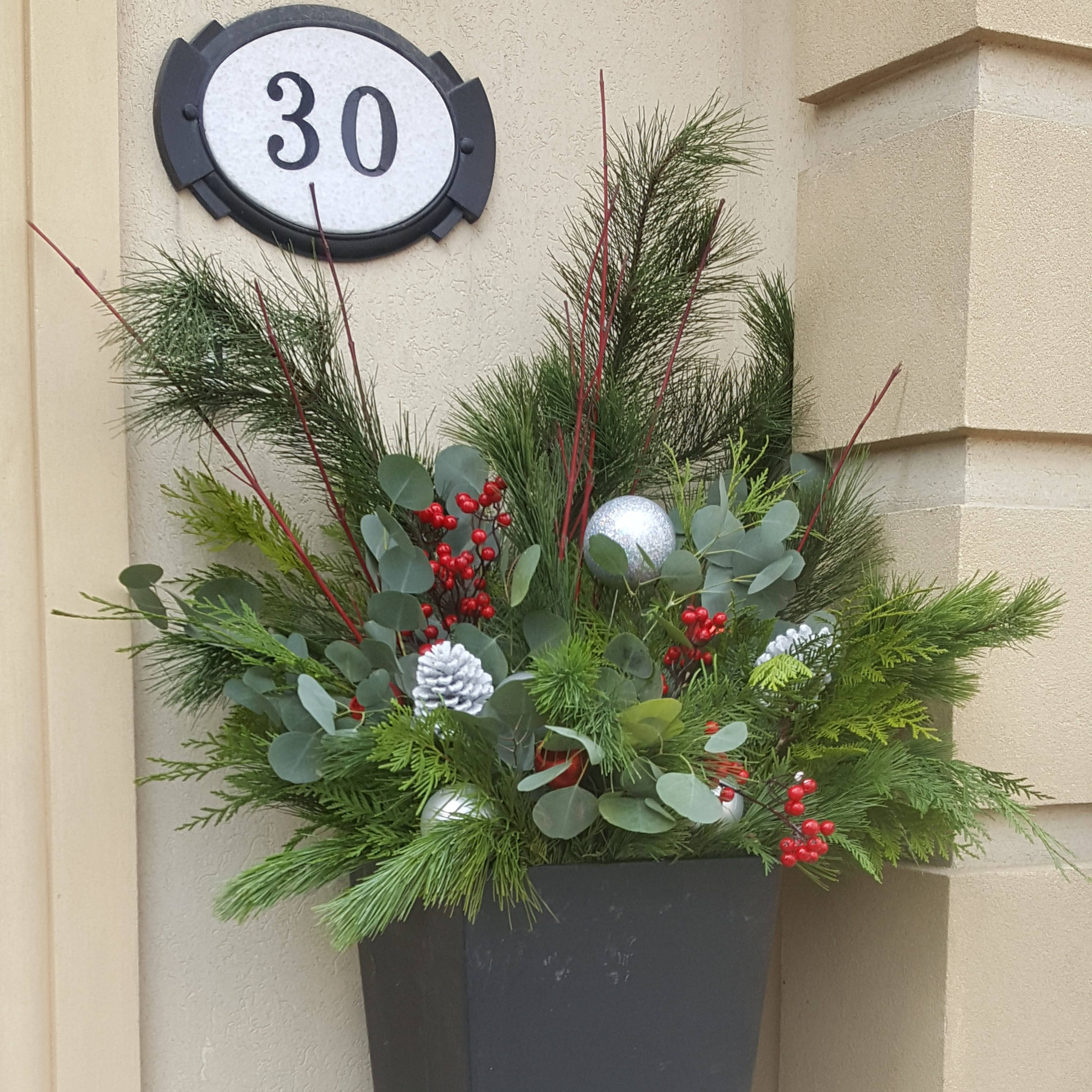 This planter needed to be short. Do you need a house number left visible? This is very Christmassy with silver and red.